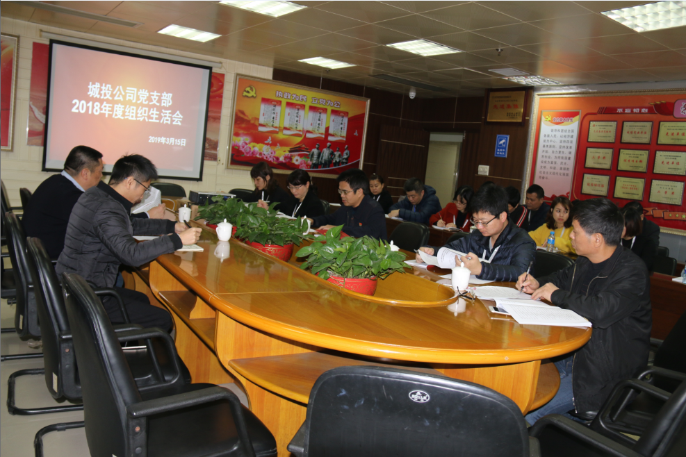 2019年3月15日上午,城投公司黨支部全體黨員在三樓會議室召開2018年度組織生活會暨民主評議黨員大會。會議由黨支部副書記藍茂瑞主持,城發集團黨委副書記陳明參加了會議。